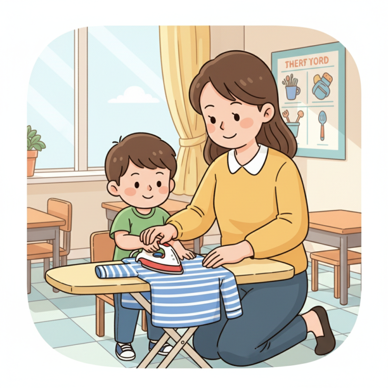 Tentu saja, proses memperkenalkan menyetrika perlu dilakukan secara bertahap dan dengan penuh kesabaran. Mulailah dengan memperkenalkan peralatannya: setrika, papan setrika, dan kain. Izinkan anak untuk memegang dan memahami fungsinya terlebih dahulu. Terapkan metode visual dan demonstrasi langsung agar anak lebih mudah memahami setiap langkah.