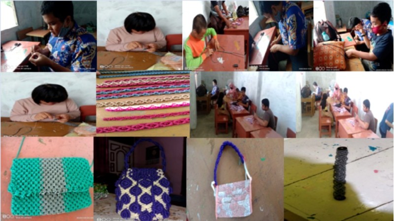 yang dirajut dijadikan konektor masker, berusaha bersama beberapa orang siswa