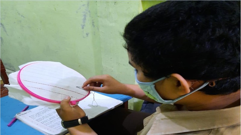 Siswa SLB Autisma YPPA Padang sedang latihan teknik dasar menyulam.